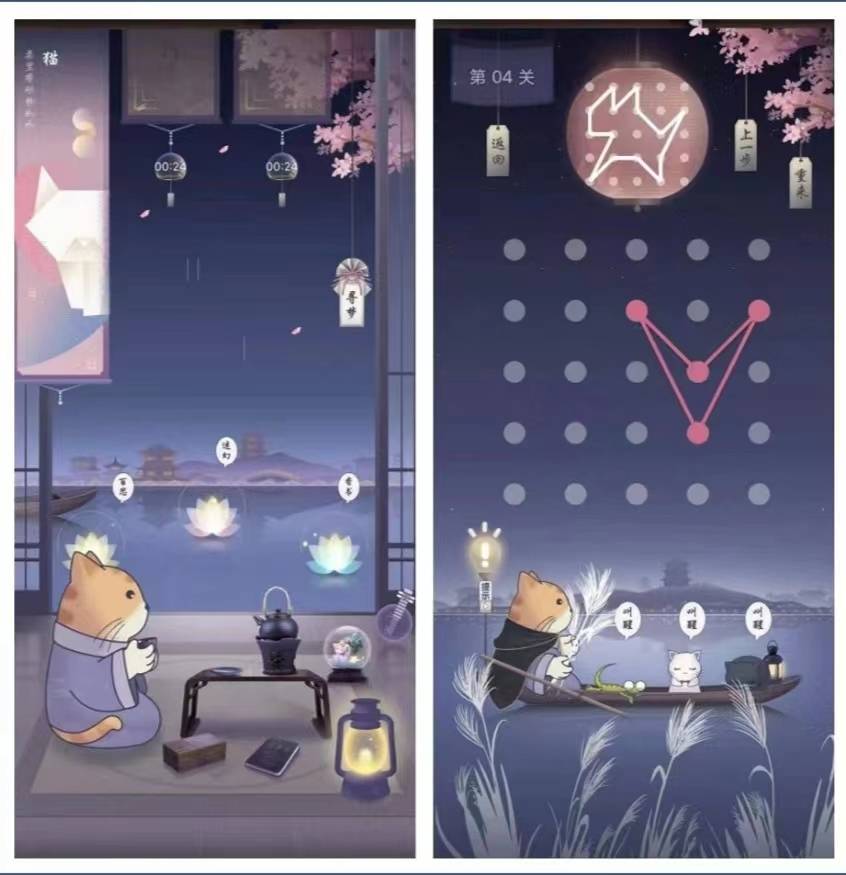 它支持的游戏包括:叠纸游戏、猜谜游戏、记忆猫爪游戏、寻梦小游戏、星空划船拉线游戏,总共 5 个小游戏,每个小游戏都是非常好玩。