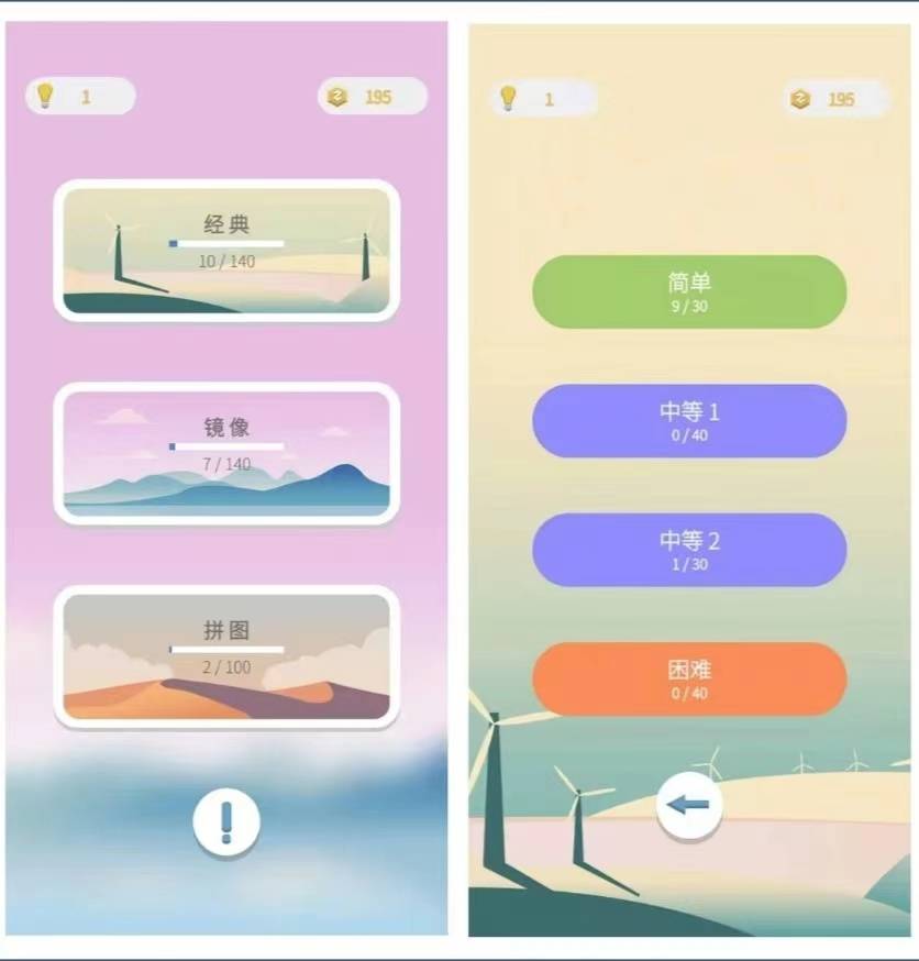 它支持三种模式,分别是经典、镜像和拼图,每种模式都支持多种难度,包括简单、中等和困难,每一个难度又包括多个关卡,你可以选择模式然后选择难度。