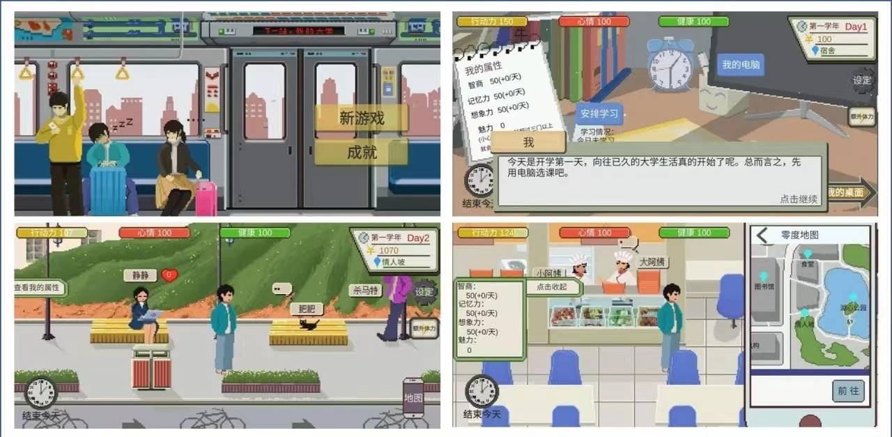 你需要经历大一、大二、大三、大四,在游戏过程中可以选课、安排学习、弹吉他、洗衣服、练习运球、去食堂打菜、去樱花大道看樱花拍照、去健身房健身、去图书馆学习、兼职、编程写插件项目、去湖心公园和冰冰跑步、去培训机构报名编程培训和考研培训等。