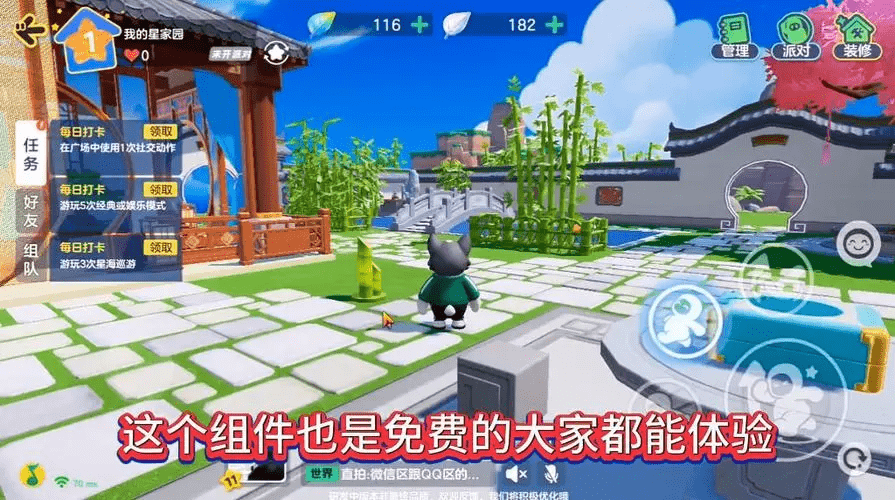 《元梦之星》的星家园也就是家园系统,可以选择不同风格的建筑来作为家园的主题,然后根据自己的喜好来进行家园的布置,还能通过种植作物、养殖动物的方式来获取资源,提升家园的等级和规模,算是一种模拟经营类玩法。