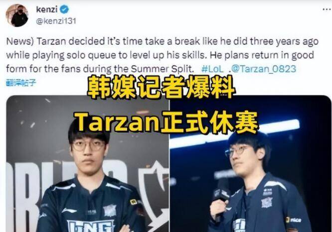 而tarzan的去处也成为了大家关注的焦点,因为世界赛的表现,现在的Tarzan彻底被抛弃,最近大家看到有一个消息出现,那就是tarzan要注意了,因为LPL和LCK都不要他,所以无奈宣布休息一段时间。