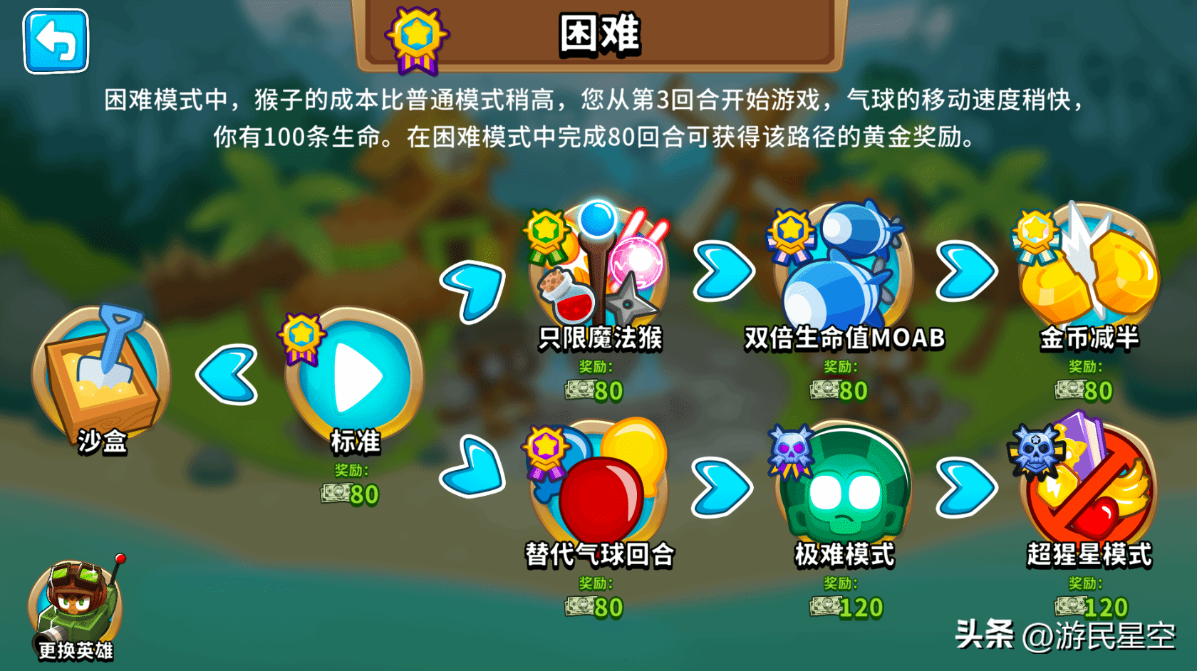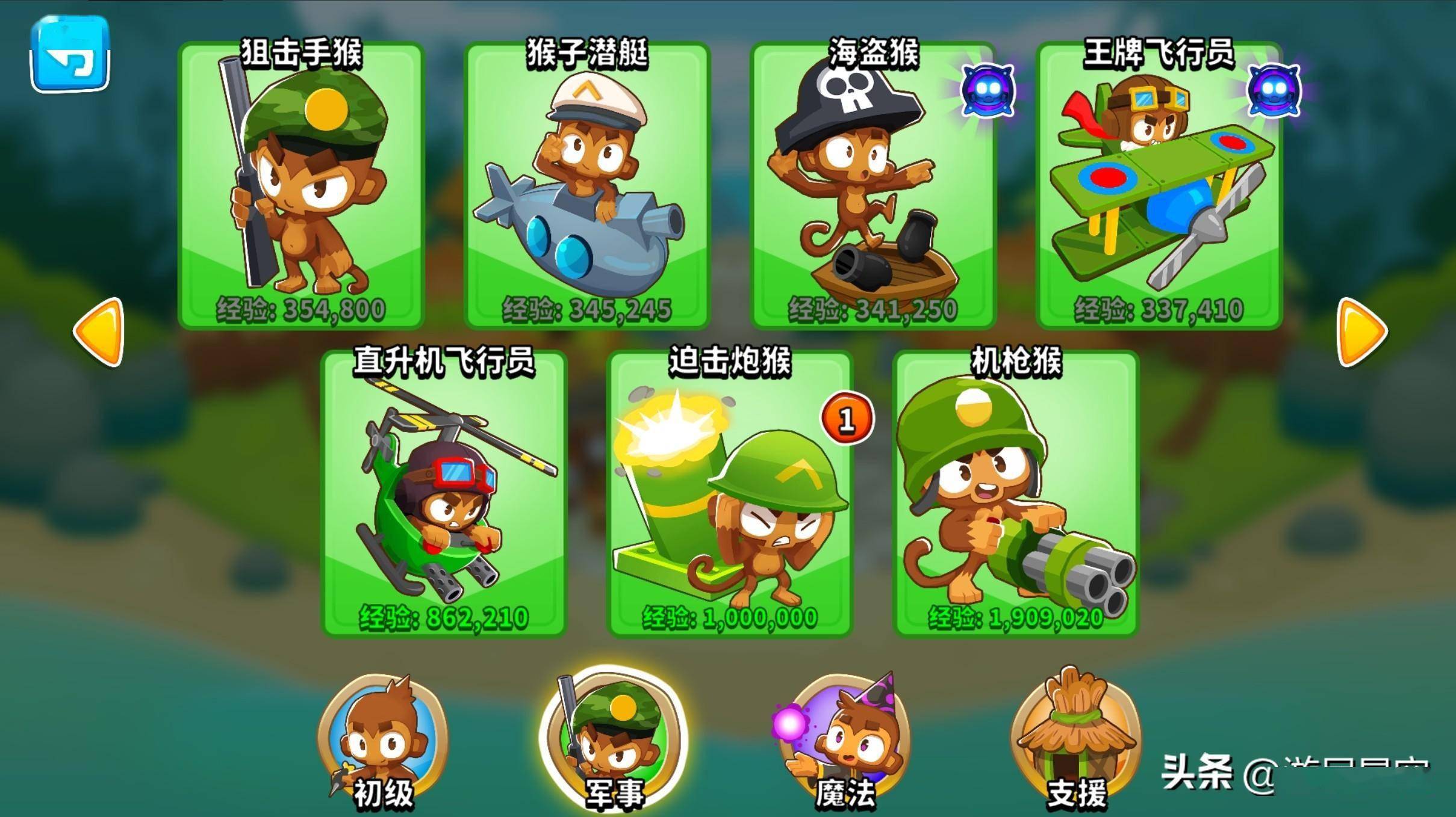 我所举的例子,仅仅只是军事这一类型的其中一个单位,实际上《气球塔防6》的各类猴子单位加起来达到了23个,除此之外还有14个造型不同、能力各异的猴子英雄,仅仅将他们的所有成长路径熟悉一遍,就需要玩家花上十几二十个个小时,更别提研究配合和战术了。