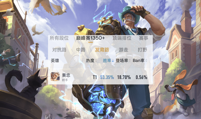营地数据显示,黄忠在所有段位出场率15.5%,胜率53.15%,巅峰赛出场率18.7%,胜率53.35%。不知道大家有没有发现,调整后的黄忠数据变好了,在出场率稳步提升的情况下,胜率提升了2个点。仅从数据方面来看,黄忠确实变强了,而且强的不是一点点,其数据在射手位置就是第一名,超过了戈娅、伽罗、鲁班七号等热门射手,他确实超标了。