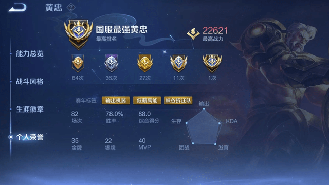 新的一周巅峰赛排名刷新,巅峰第一的玩家是AG的职业选手极光,而他所使用的英雄正是黄忠。春江水暖鸭先知,职业选手的嗅觉比路人玩家高很多,看来职业选手也比较认可黄忠的强度。黄忠的战力已经超过了22621,这个数据在射手位置排名靠前,让马可波罗这样的射手望其项背。无论从数据来看,还是从玩家的表现来看,黄忠确实是新一代的三体人。