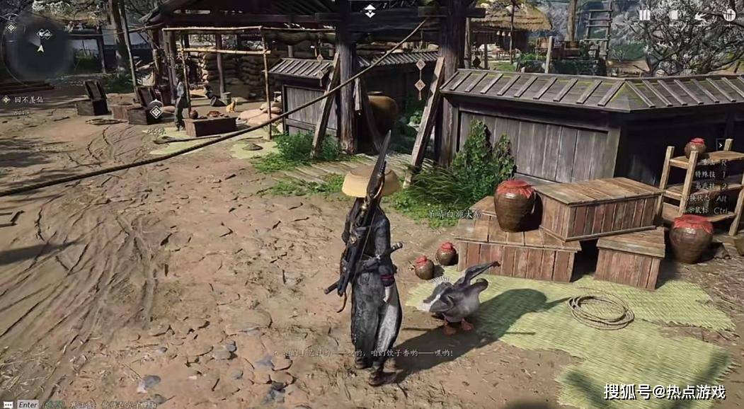 首先要提到的便是自测试以来就声名远扬的“村霸”大白鹅,一开始路过村边看见几只名为“吊晴白额大鹅”的大白鹅,玩家并没有过多的在意,或许这只是游戏里面的一只平平无奇的小动物而已,事实上他们确实无害。当玩家靠近时,大白鹅依旧自己在玩自己的,并没有给玩家过多的关注,一切都是那么风平浪静。