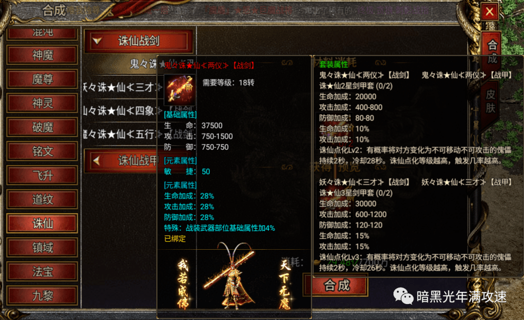 大家好,欢迎来到【暗黑光年满攻速】,本期小编为大家介绍的是黑暗光年诛仙神装的相关介绍,感兴趣的朋友就和小编一起看下去吧!