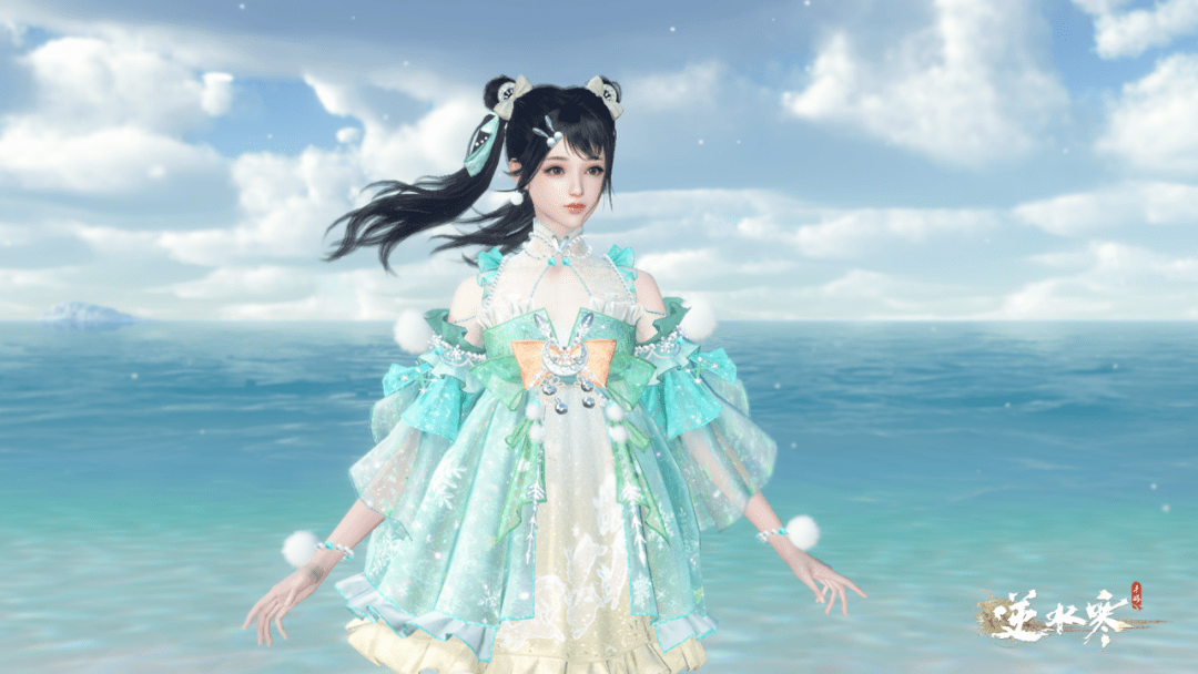 如果想让这种cosplay兔子的感觉更加直观和沉浸的话,还可以花1元钱购入兔耳朵配饰、花6元钱入手蝴蝶结小兔子,反正全套下来都不及半杯奶茶。那就让我们在这个精彩的冬日、兔年的尾巴,一起在《逆水寒》手游中可爱翻倍吧!