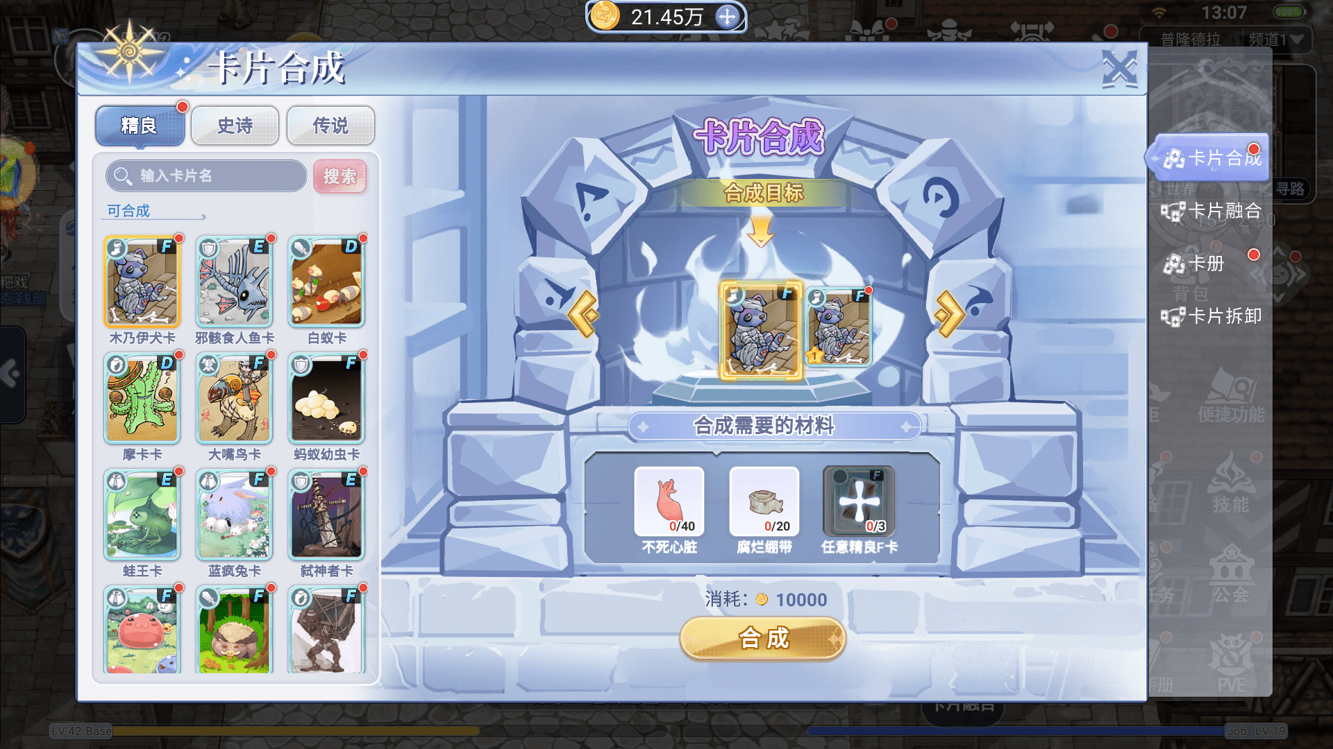 注:传说级别的卡片无法被合成和融合,目前只能通过扭蛋抽奖获取。