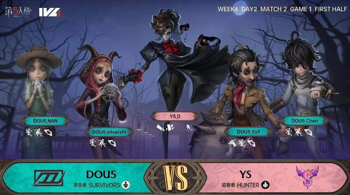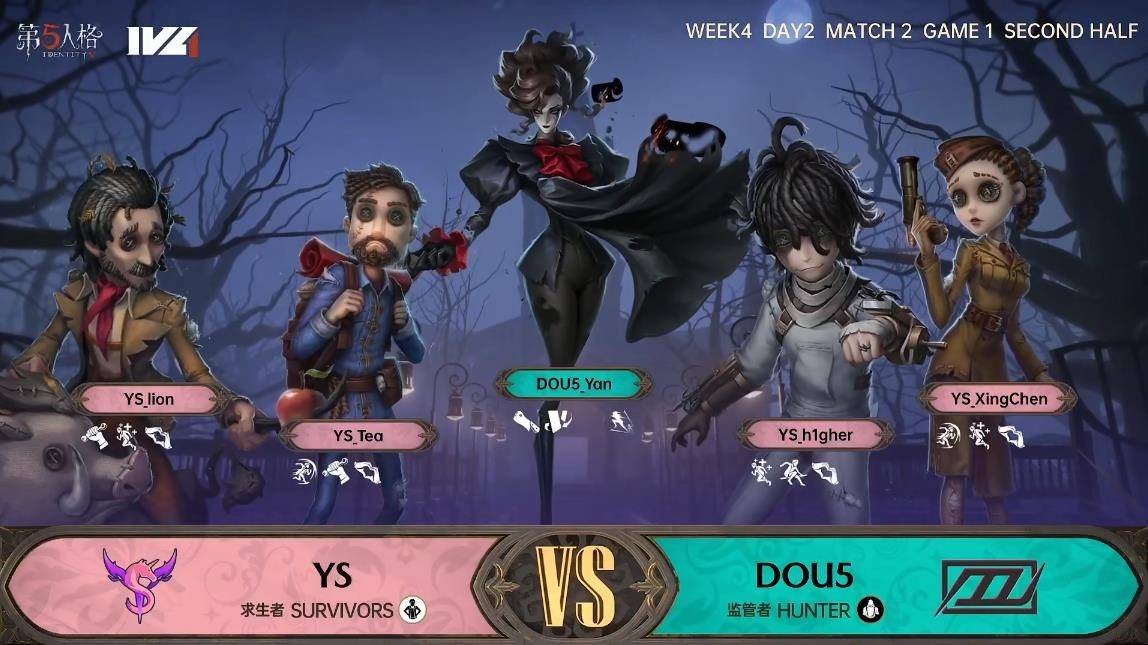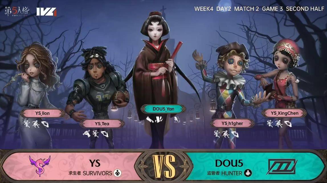 今天将进行的是第五人格2023IVL秋季赛常规赛的第4周第2天第2场比赛,对阵双方为YS战队和DOU5战队。