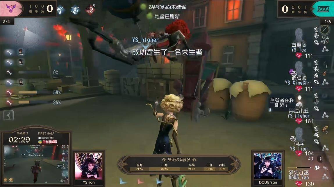 求生者YS战队——Ban:歌剧演员 梦之女巫Pick:YS_Tea前锋 YS_lion心理学家 YS_XingChen舞女 YS_h1gher杂技演员