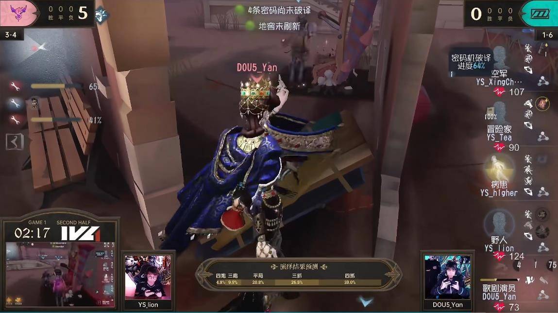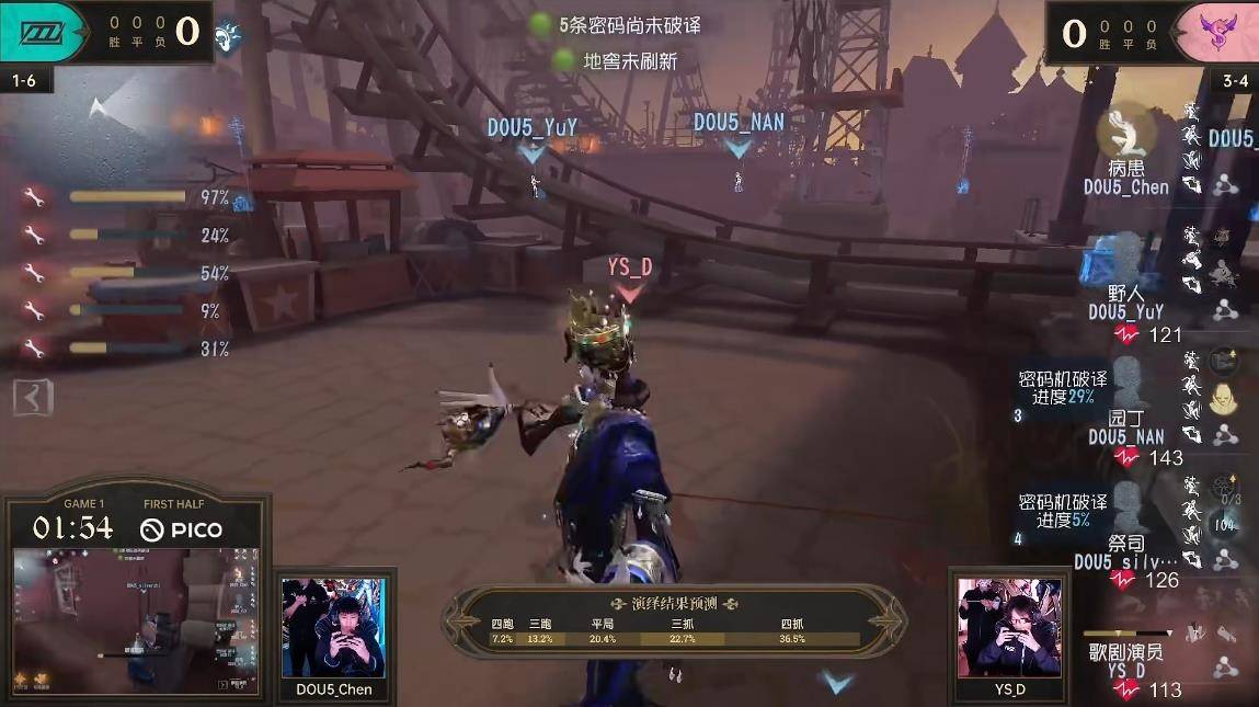 求生者DOU5战队——Ban:歌剧演员 红夫人Pick:DOU5_NAN哭泣小丑 DOU5_silverzhi冒险家 DOU5_YuY大副DOU5_Chen空军