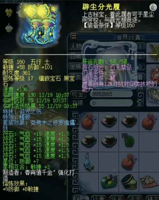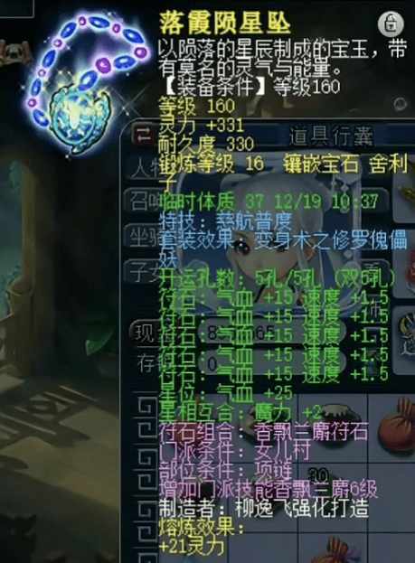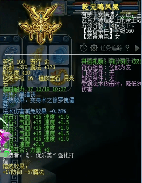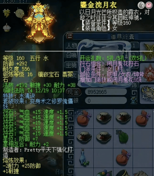 佩饰上排速度30满属性,下排法防共98爆14
