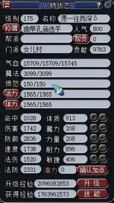 具备15709气血、2836防御、2331法防的情况下,还有惊人的1738速度