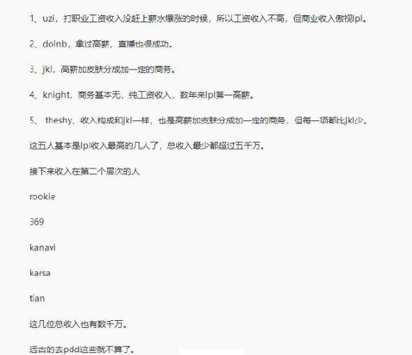 虽然这件事之后WBG那边也有解释,但是大量网友还是不买账,这件事还在那边发酵,于是最近大家开始讨论LPL选手的收入问题,于是就出现了LPL选手收入排行榜,uzi签约费不是最高,却靠一项收入傲视群雄。