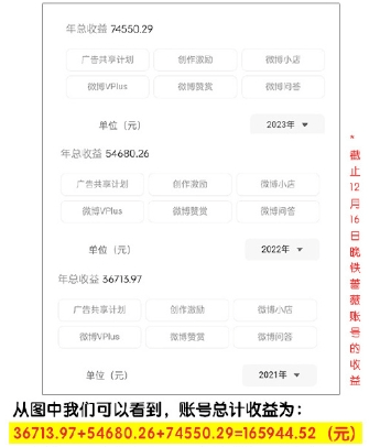 比如开通微博共享计划赚取收益,根据组员放出的后台数据可以看到,目前账号总收益超过了16万元,且已经被铁蔷薇组长提取到个人账户。