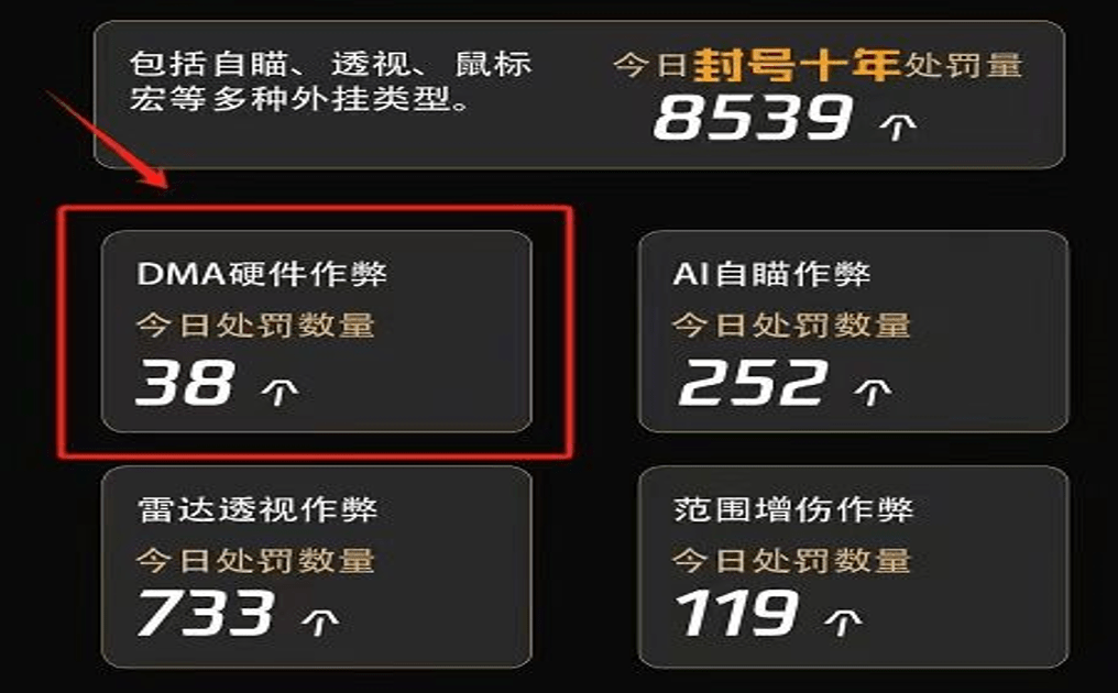 最后就是腾讯对DMA外挂的处罚力度,在今年6月首次开启了针对DMA的打击公示,并在首月封停了500+高等级账号,且其中小号占比极低,且在11月官方继续收集存在硬件异常的样本,同时不断升级针对DMA外挂的安全技术和策略,所以在这样的手段下市面上大部分DMA外挂已经是无所遁形,面临检测封号!