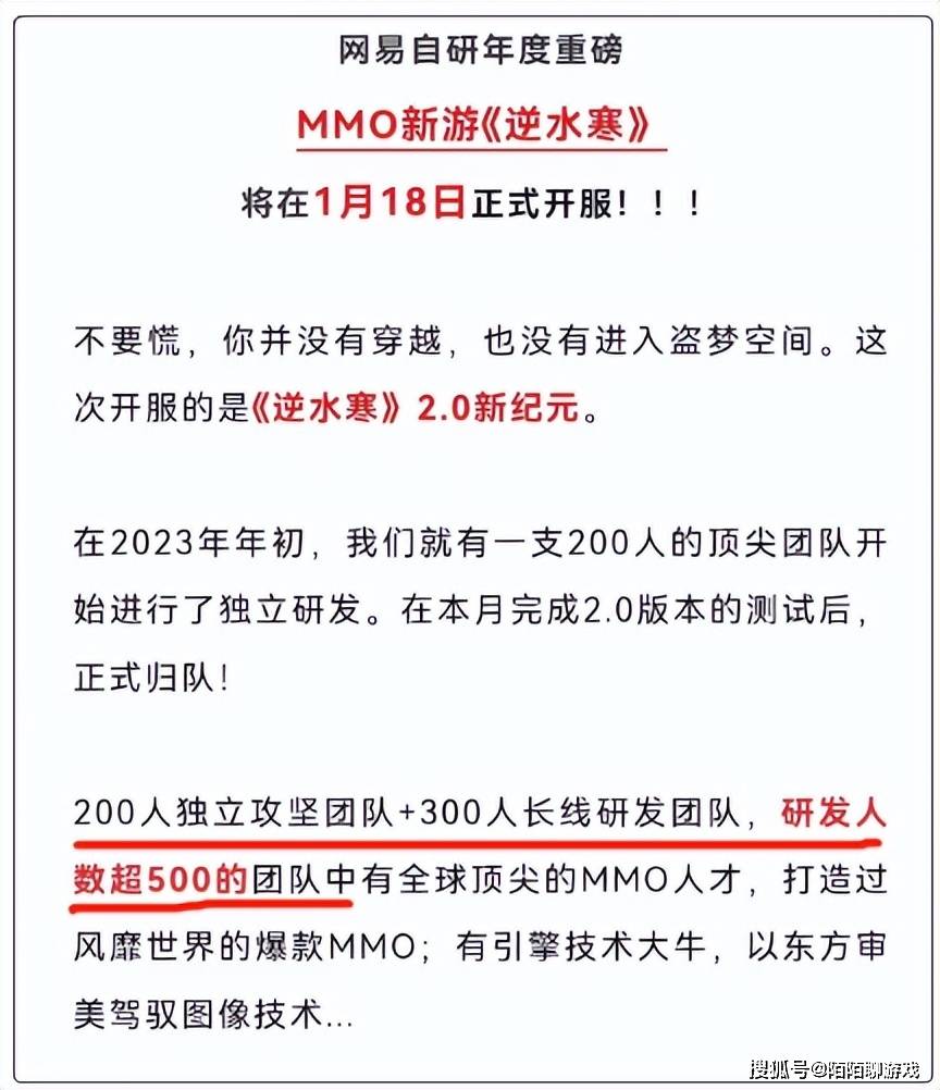 原来,《逆水寒》最近放出了2.0新纪元版本爆料,号称有一个200人的独立攻坚团队+300人长线研发团队,一共500人的队伍,其中还藏着全球顶尖MMO人才,要打造一款全新游戏。