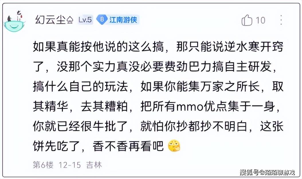 有五年老玩家表示:“如果真能这么搞,说明网易开窍了,只要集万家之所长,细细打磨游戏就已经很牛了。所以对这波饼,我先观望,最后看这饼香不香。”