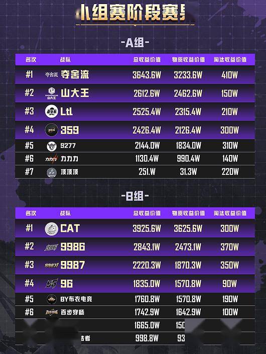 夺舍流、CAT两支战队最终斩获A、B组头名