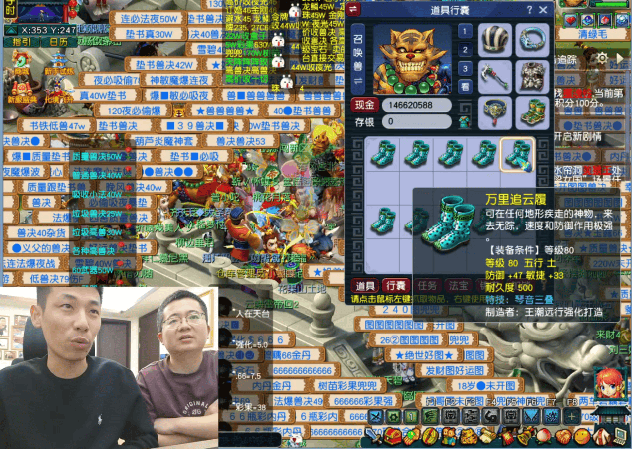 或许是给毕总的龙宫号鉴定装备次数太多,轮到宝哥自己鉴定时,也频频出现法系装备。这晚他拿到的最好装备,就是这双80级琴音鞋子。当毕总有意收购时,宝哥大方地直接赠送给了他。