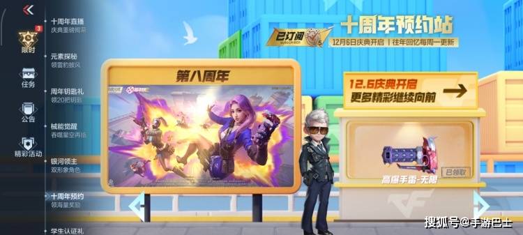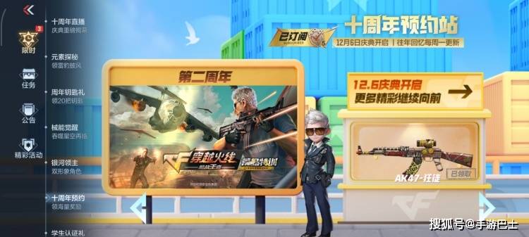 不仅如此,在十周年预约站当中,还有承载着大家情怀的奖励等着你领取哦~我们可以跟随着刀锋的脚步,走过每一年的记忆碎片,同时在看板上还有饱含火线回忆的武器点击即领!还等什么呢?赶快去看看吧!