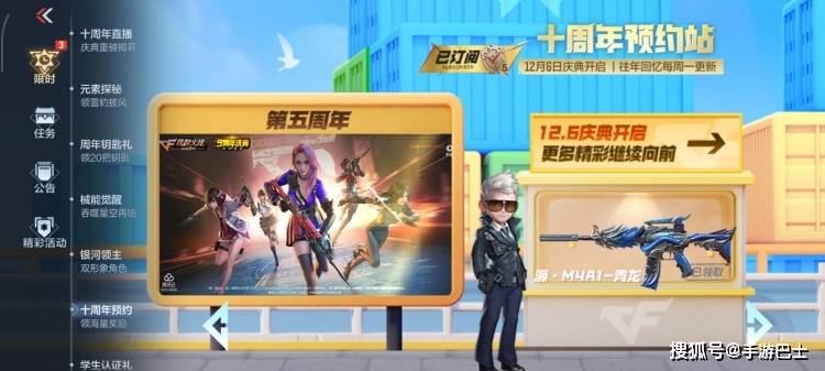五周年版本主题为“不赢不算玩”,上线多种娱乐玩法。该环节可领取永久源·M4A1-青龙,源·M4A1-青龙以蓝色为基调,完美符合了古人对于青龙的描写,湛蓝的龙盘绕在枪身上,其稳定的弹道和高射速使它能够稳定输出,无论是新手入门还是高手进阶,都能凭借它打出亮眼操作。