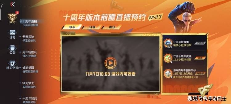 手游巴士(www.shouyoubus.com)2025年11月07日:哈喽,各位CFer大家好,就在11月7日18:00,十周年版本前瞻直播将会开启,全民福利来袭!不仅有经典武器返场,还有海量钻石、王者之骰等你来拿!还不快来瞧一瞧!