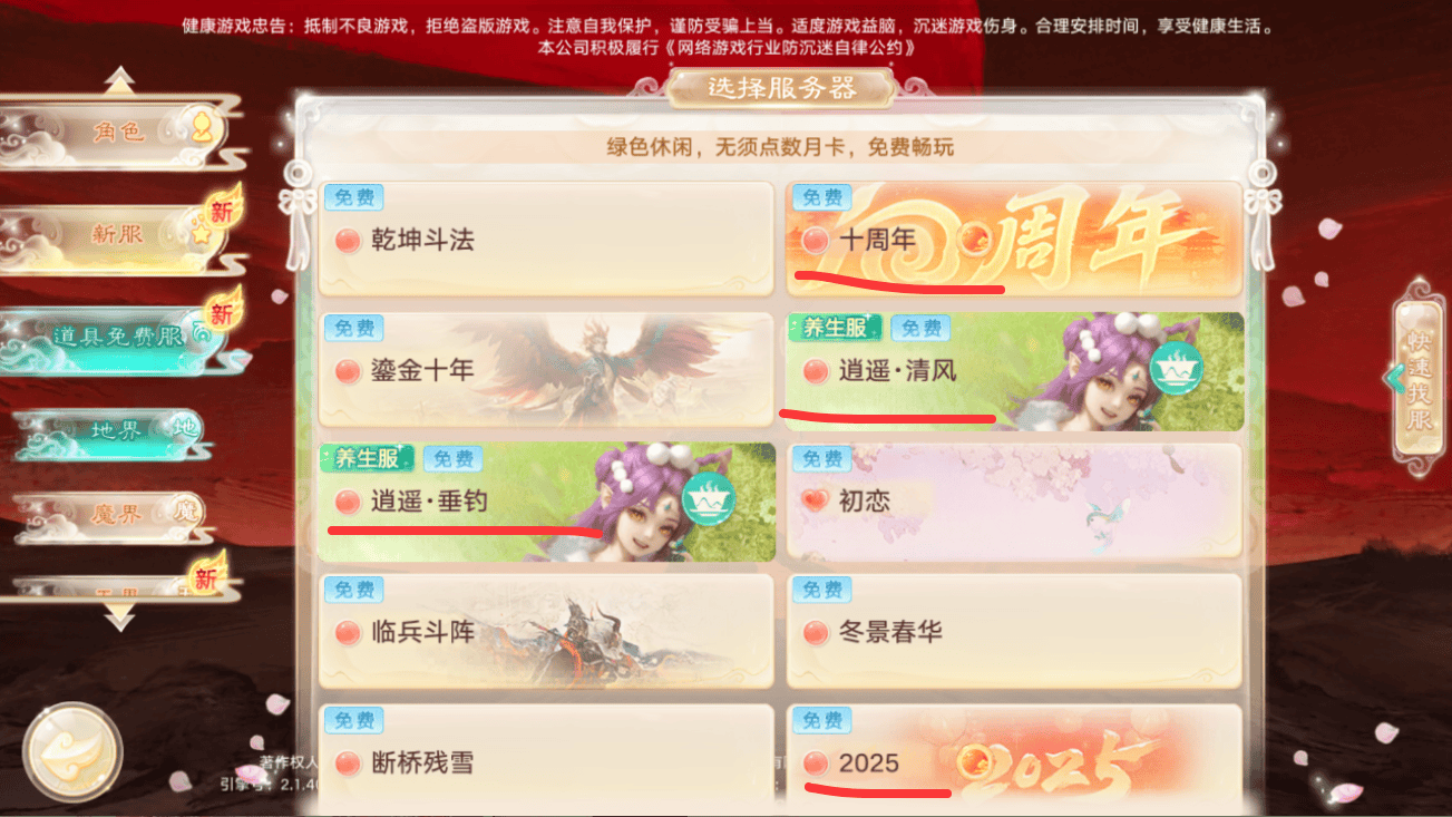 如果是新手玩家/普通玩家,这些大火区不一定适合大家,大话手游也有很多特色老区适合养生,比如又见逍遥、情系今生、风花雪月、大话西游等等,而2025、十周年,包括最近新开的仙剑奇侠,新服活动多奖励好,最适合新人体验了。