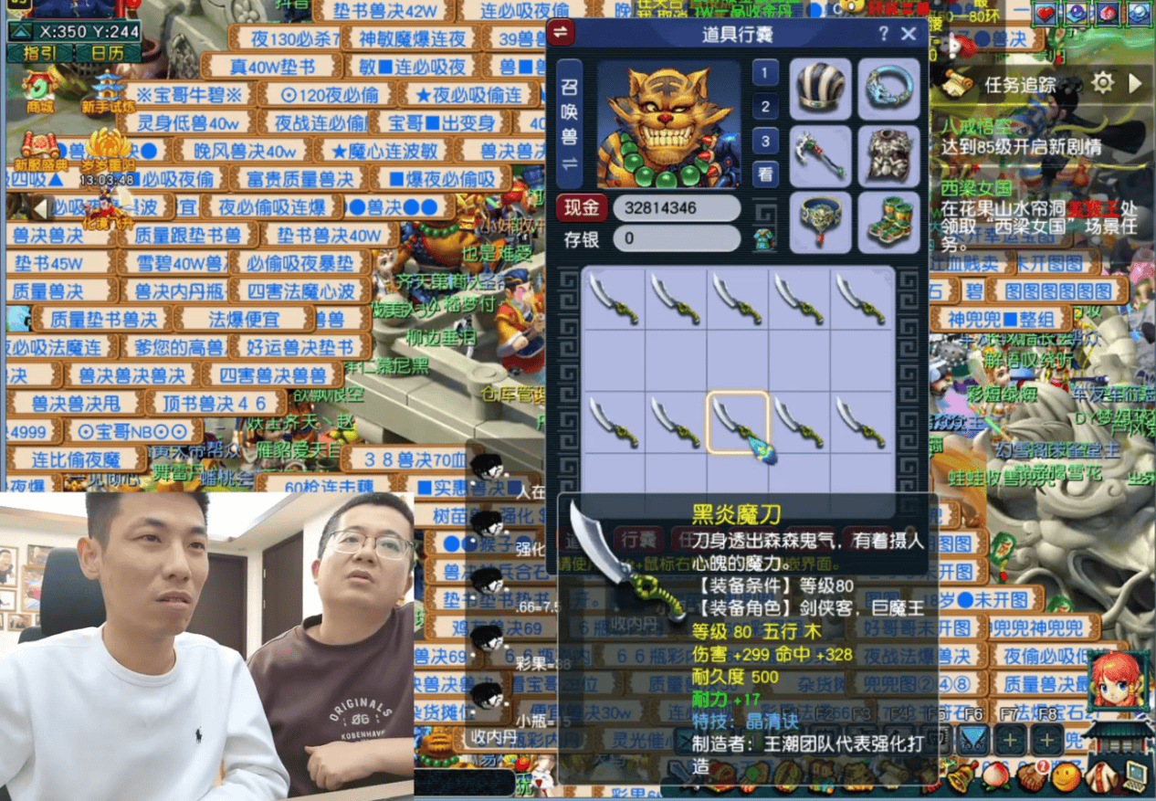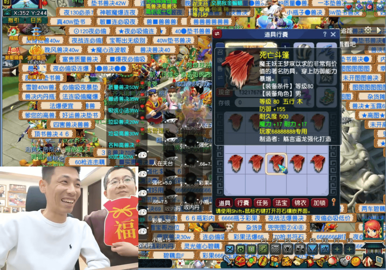 鉴定前,他坦言一件未鉴定的80级装备成本已高达1600元。尽管如此,团队成员“毕总”仍备足数车装备以供冲击神器。宝哥不负众望,鉴定出一件初防155、魔耐双加34的专用铠甲。