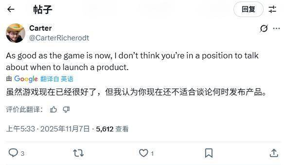 “区别在于,GTA6不会像你们的游戏那样带着瑕疵发布。”