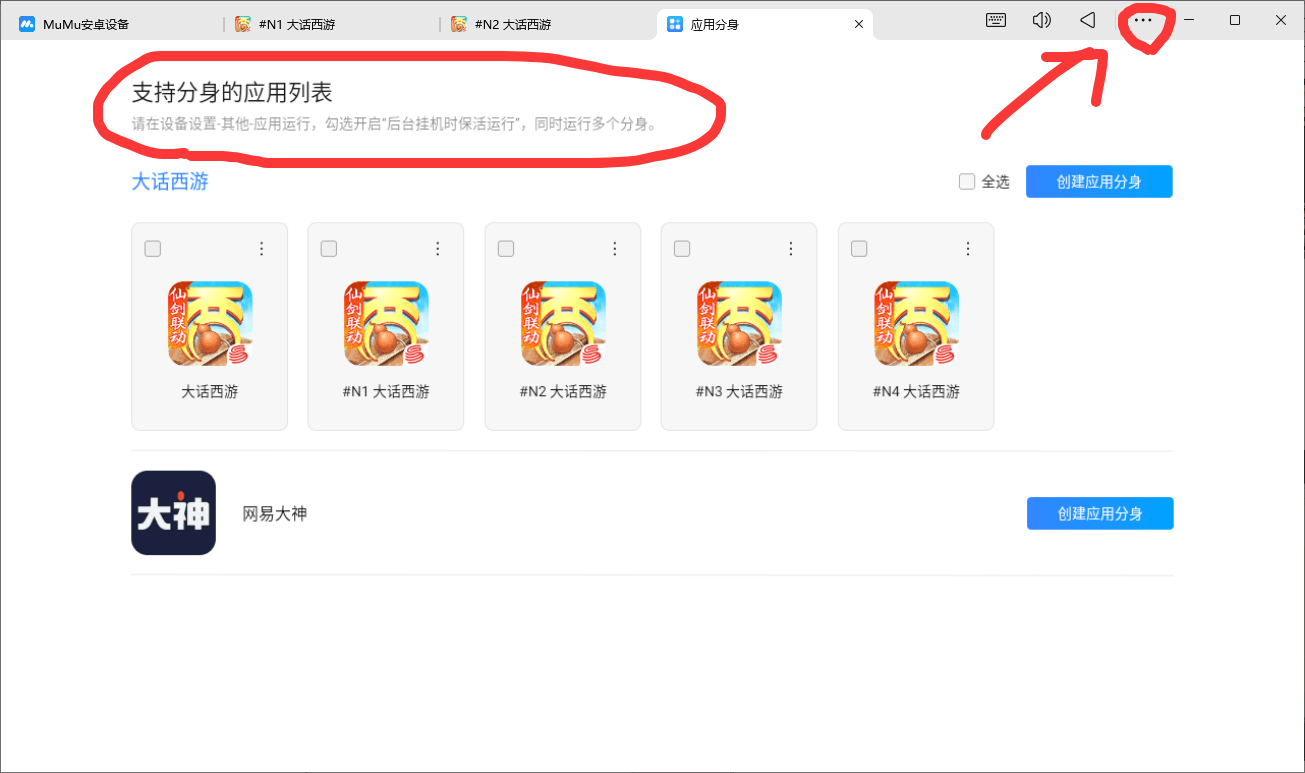 电脑桌面版五开,建议配置i5处理器+16G内存+独立显卡,可稳定运行5个账号,也是在右上角…选择应用分身,创建5个大话西游手游应用就可以了。
