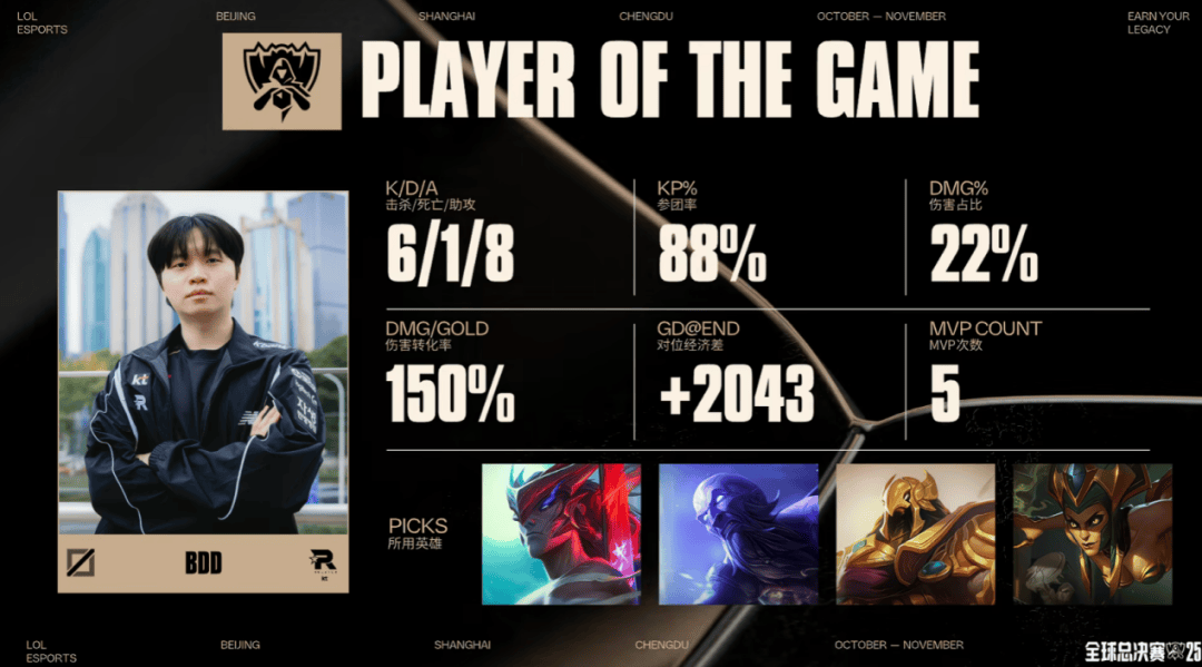 2021年,EDG在冰岛书写逆袭传奇。面对三支LCK队伍的围剿,他们一路突破重围,先在四强击败GEN,后在决赛鏖战五局拿下DK,最终捧起冠军奖杯。众多展品中,圣枪哥Flandre的“金雨蓝雨收藏球”尤为特别——他将2021年夏季赛决赛和全球总决赛现场洒落的彩雨珍藏其中,这或许就是选手心中最珍贵的夺冠见证。