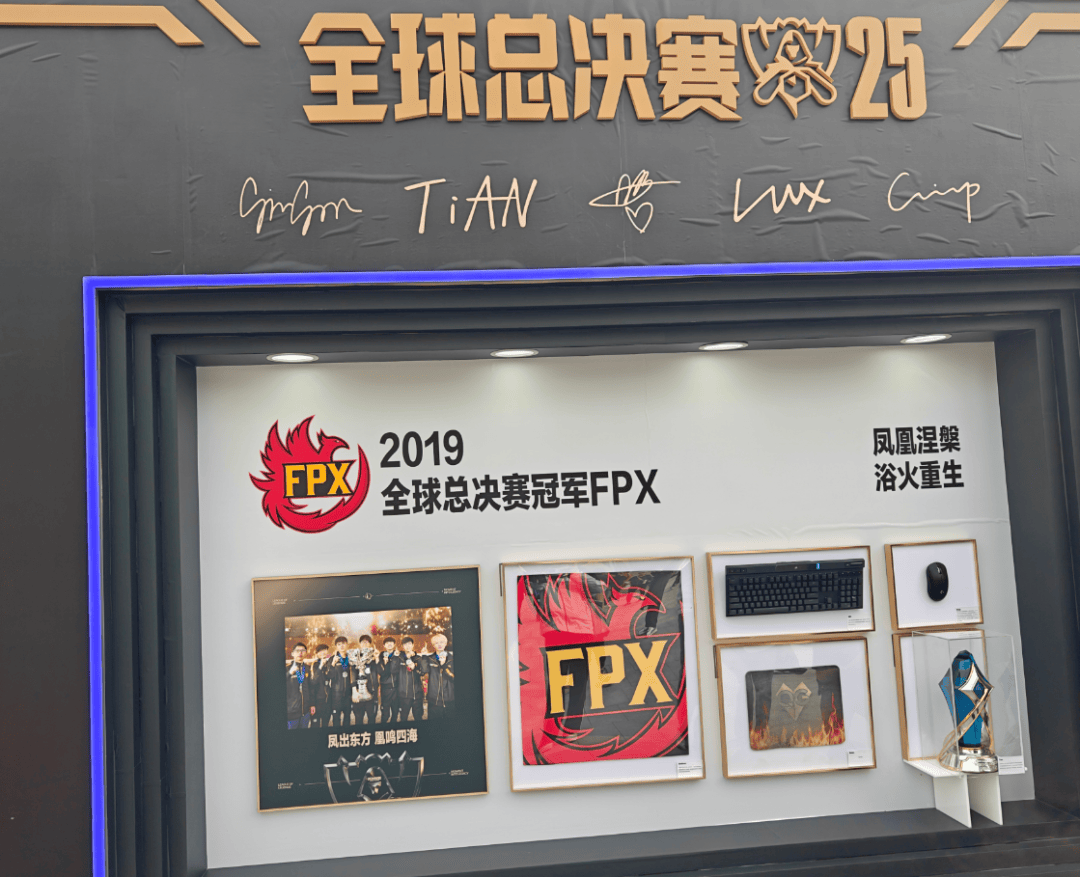 19年的世界冠军FPX战队,同样承载了许多“巴黎人”的美好回忆,Doinb爱人糖小幽挥动的战旗、Tian选手的FMVP奖杯、Crisp陪伴多年的鼠标……这些物件静静陈列,却仿佛仍带着当年赛场的热度。耳边似乎又响起了Doinb那句响彻场馆的“我们是冠军”!