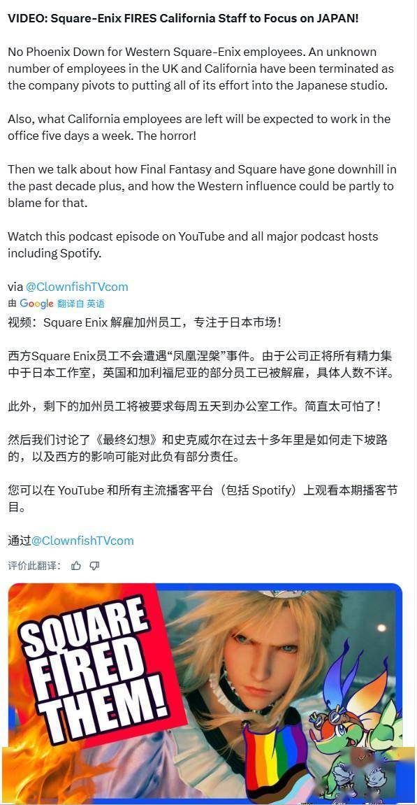 SE在欧美大裁员后,西方玩家弹冠相庆: