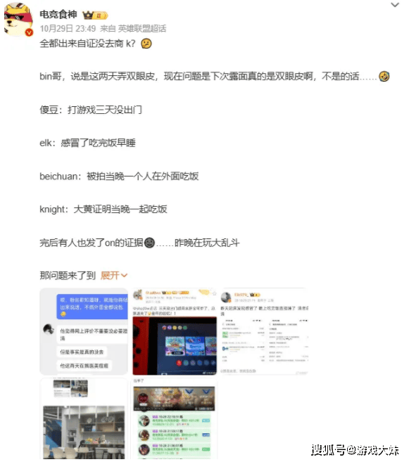 Knight则晒出当晚与好友大黄一起吃饭的照片,大黄本人也在评论区作证,表示确实同桌用餐,最有趣的是上单Bin的回应——他的朋友替他“出面”,称Bin那天在做美容,还特意说明“刚割了双眼皮,不能乱跑”,这波解释直接让网友笑出声。