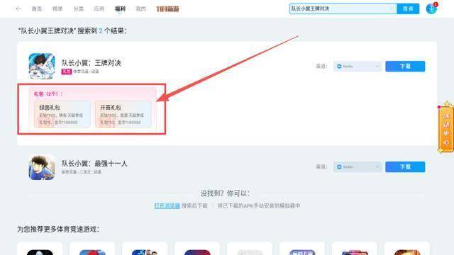 方法一:启动模拟器,在游戏中心搜索“队长小翼:王牌对决”,点击下载。