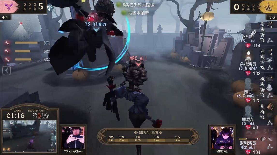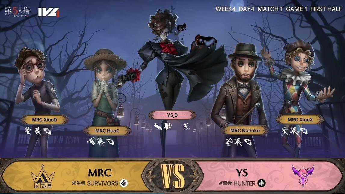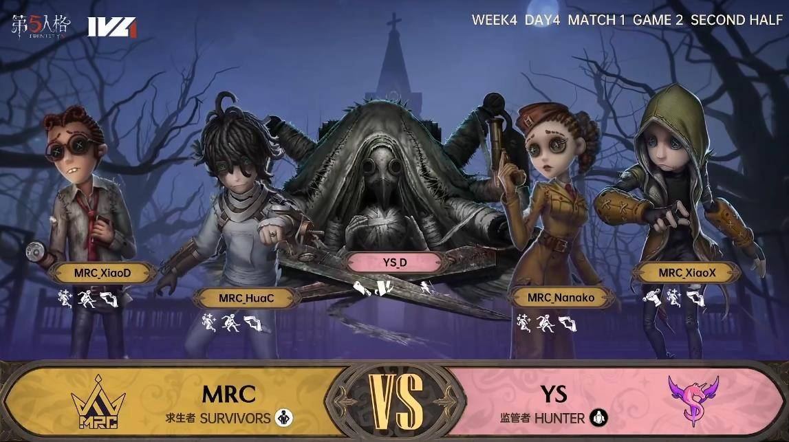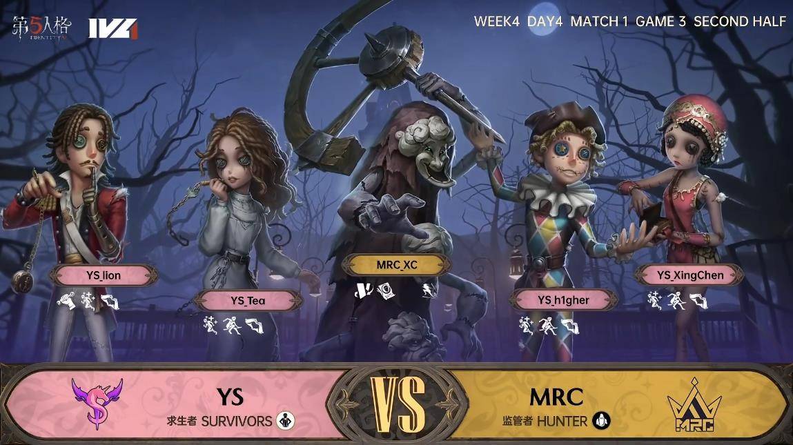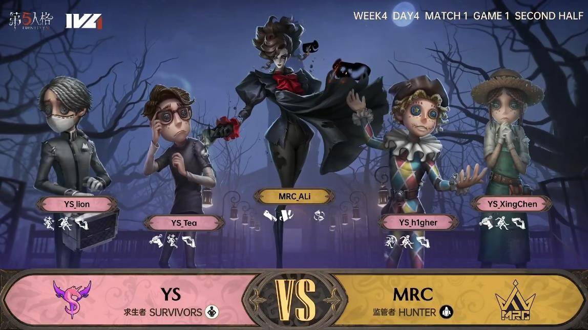 今天将进行的是第五人格2023IVL秋季赛常规赛的第4周第4天第1场比赛,对阵双方为YS战队和MRC战队。