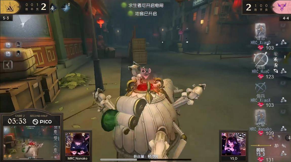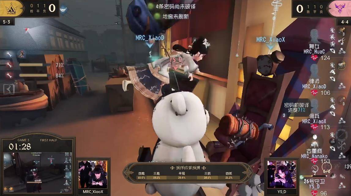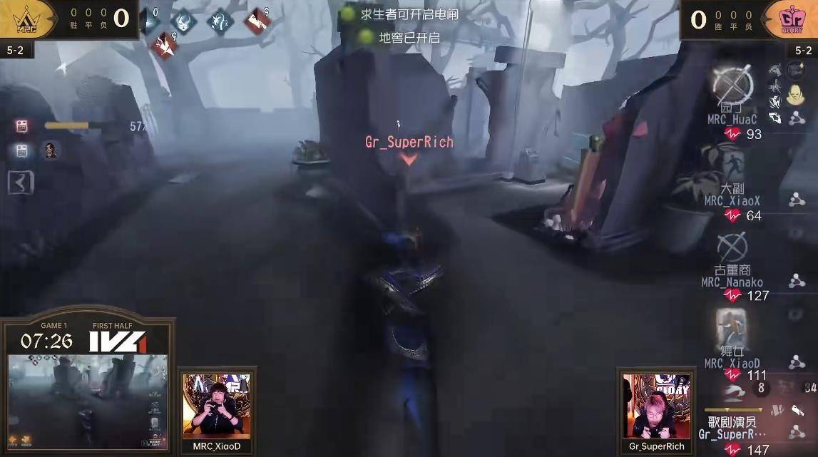 求生者MRC战队——Ban:歌剧演员Pick:MRC_HuaC病患 MRC_Nanako空军 MRC_xiaoD律师 MRC_XiaoX佣兵