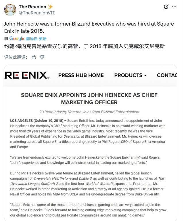 SE游戏的觉醒化,比如《最终幻想14》觉醒开发者Kate的胡作非为全都是在John Heinecke任内发生的