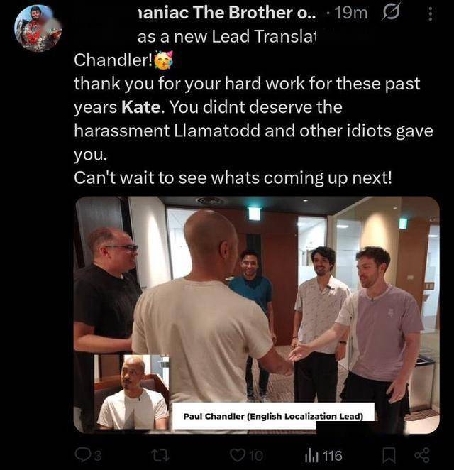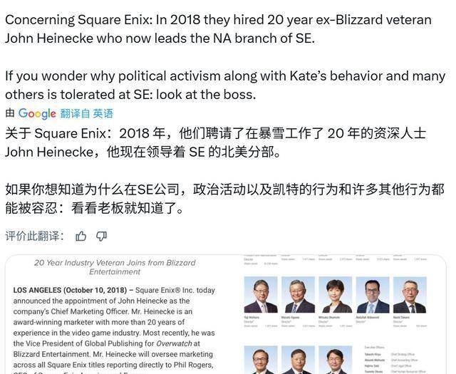 SE的这波裁员非常精准到个人。除了John Heinecke外,《最终幻想14》负责西方本地化的woke开发者Kate Cywnar也被解雇。