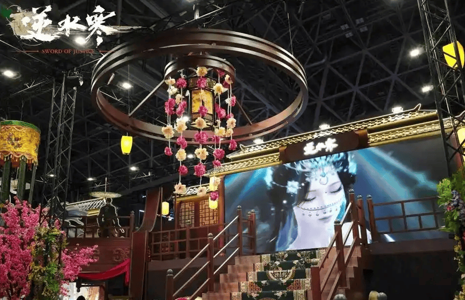 而在出海的推广上也是如此。你会看到,《逆水寒》将国风特色营销出去的思路很大胆也很清晰。像是上次的TGS,当他们选择在一众二次元风格的游戏展台的包围中,架起来一个装潢古色古香又独具中国文化气息的巨大舞台,谁看到了不都得多留意两眼?