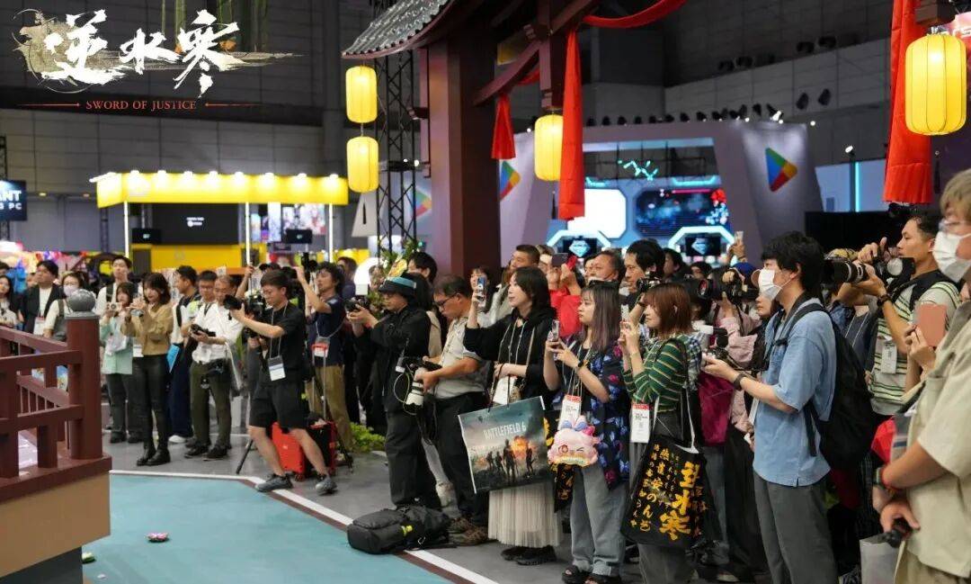 在今年6月的日本TGS(东京电玩节)上,《逆水寒》搭建起的国风展台就成了整个展会一道独特的风景线,吸引了来自全球各地的众多玩家的关注。