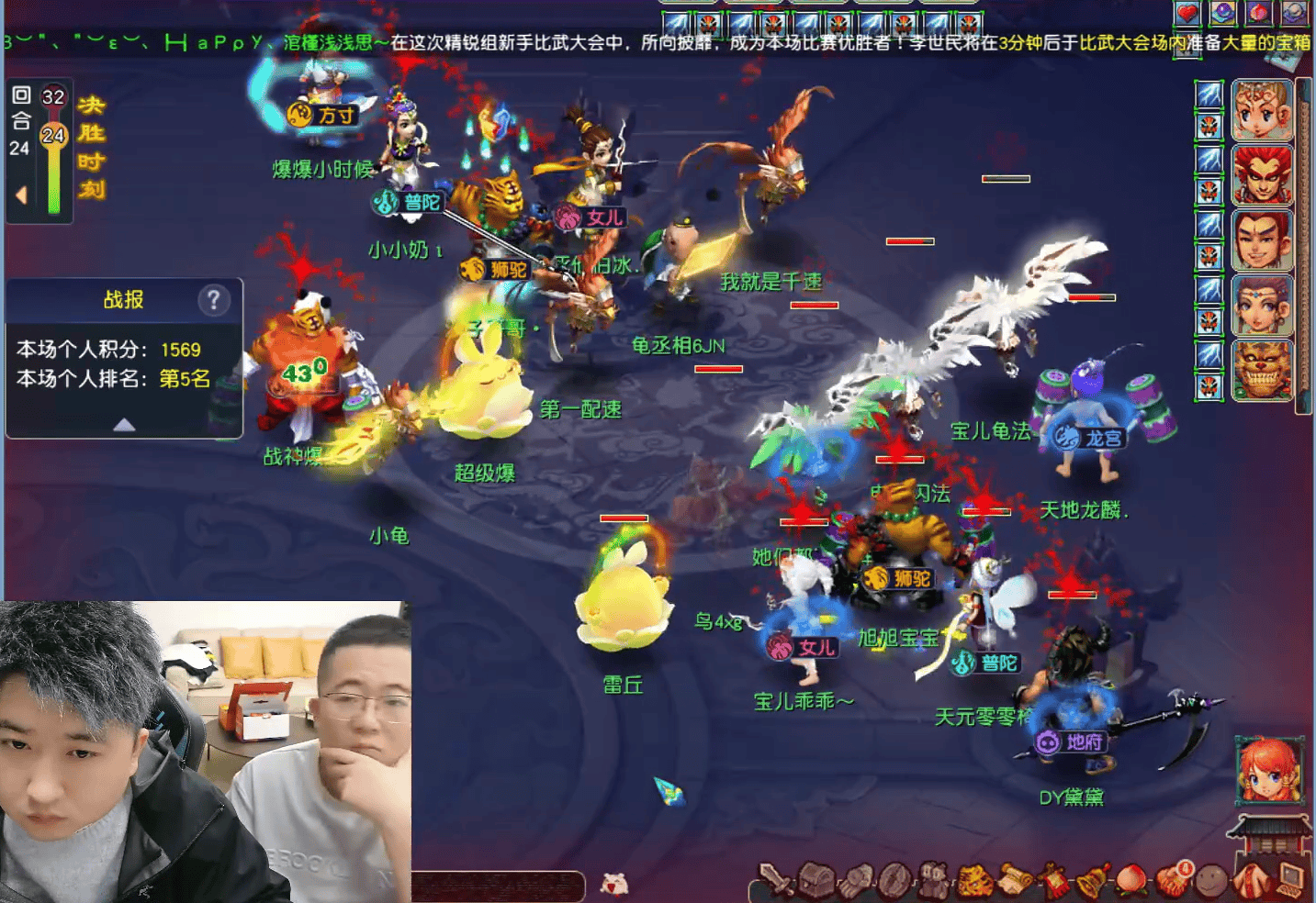 直到比武快要结束之际,他们才迎来宿敌“萌大奶”团队。双方点杀激烈,互不相让。关键的24回合,宝哥队伍的地府虽然挂中了小死亡,但己方狮驼却被封印,遗憾错失出手机会。而萌大奶队的点杀更是出其不意,试图一波带走宝哥队的龙宫,好在宝哥指挥提前预判,让龙宫按下了防御。最终双方均无人倒地,运气更佳的宝哥队笑到了最后。
