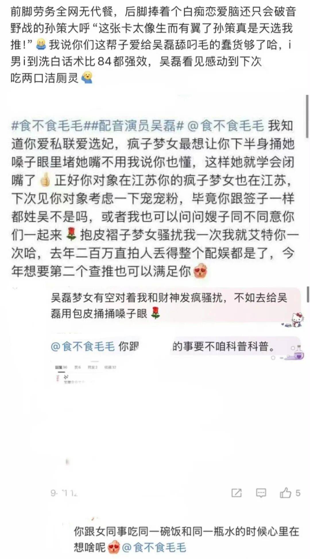 说句心里话,姬实在不认为这几位玩家能算是在正常地“说”出吴磊的问题,而是已经到达了人身攻击的范畴——你单纯骂他业务水平可以,你骂他去死、造他黄谣,这就属于法律范畴的问题了。