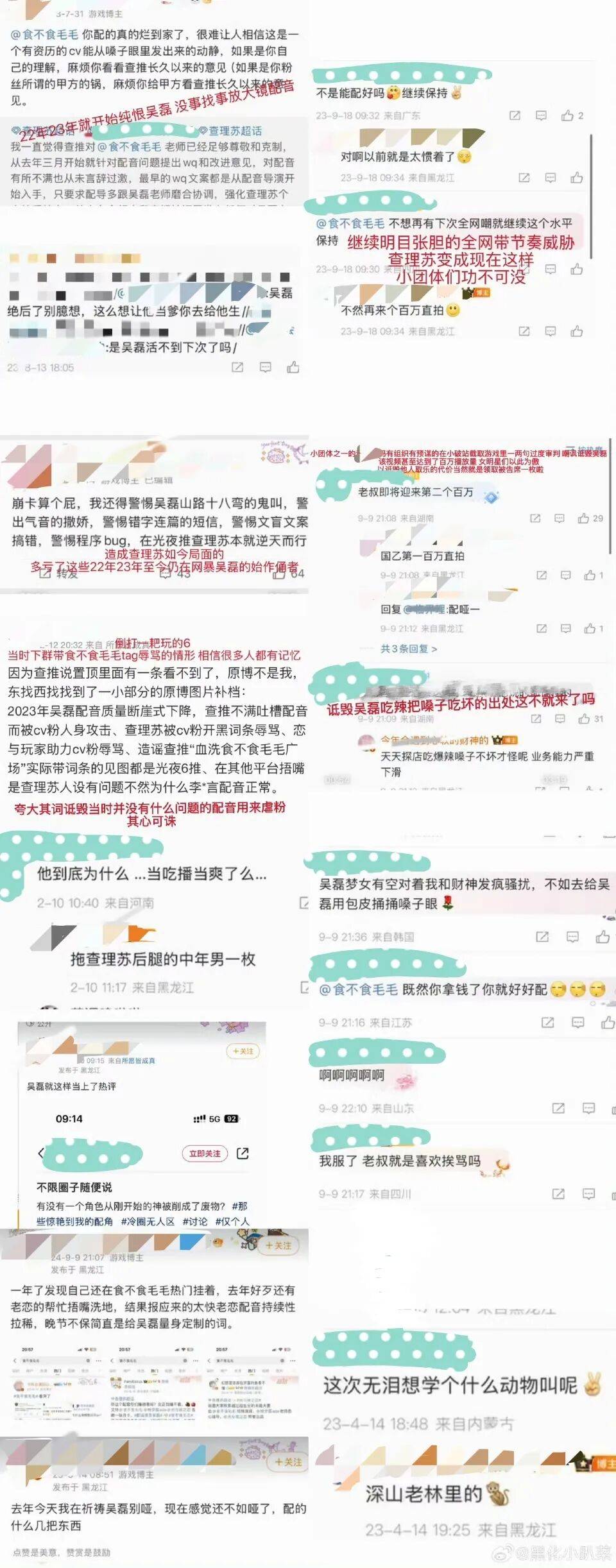 除了这位重量级选手之外,在吴磊方评论区,还有人提供了更加重量级的、来自其他玩家的辱骂拼图。