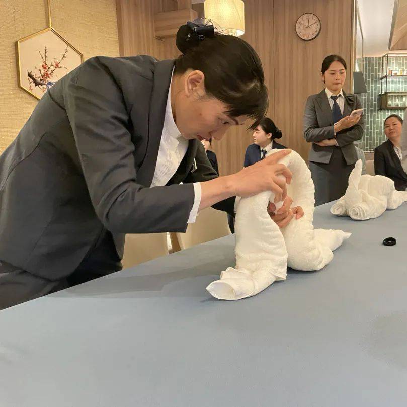 技能比武总决赛设有知识竞答、服务礼仪展示、前厅服务场景模拟,客房中式铺床、创意花式巾类折叠、店总经理综合能力评估等六大竞技项目和展示项目。来自五大区域、120多家酒店的入围选手共聚一堂,只为致敬优秀,追求卓越匠心。