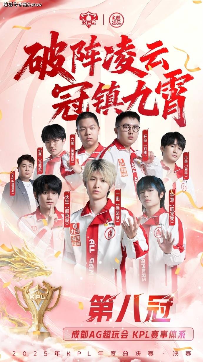 AG队史八冠为:2019KPL秋季赛冠军、2023世界冠军杯冠军、2024KPL夏季赛冠军、2024年总冠军、2024挑战者杯冠军、2025KPL春季赛冠军、2025KPL夏季赛冠军、2025年度总决赛冠军。