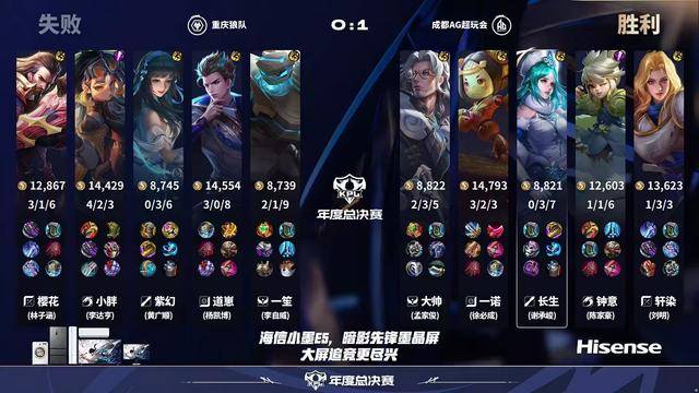 第六局AG的BP也不常规,在五楼出了个后羿,这个英雄似乎总是能作为总决赛的神之一手。前期狼队的节奏很好,这几局狼队的前期做得都很好。但在十分钟龙团的关键节点,一笙东皇想开一诺,一诺熟悉的AI级闪现,躲掉了东皇的大招,一笙只能咬少司缘,被AG集火反杀。
