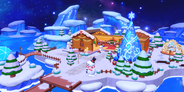 静谧雪夜,万籁俱寂,【圣诞星光】主题蓝图闪亮登场!该蓝图主要以蓝白两种颜色为主色调,巍峨挺拔的冰山将小岛环绕其中,再搭配流光溢彩的圣诞树、圆润可爱的雪人、梦幻温暖的小木屋等圣诞元素,直接将圣诞氛围直接拉满,让蛋仔们纵享圣诞的欢乐氛围!