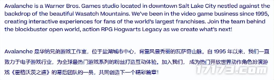 尽管招聘启事未明确提及具体项目名称,但开篇即强调“加入《霍格沃茨之遗》团队,参与新作开发”,而非Avalanche旗下其他IP,这几乎明示了该职位与《霍格沃茨之遗》续作的高度关联——极有可能正是为传闻中的《霍格沃茨之遗2》铺路。